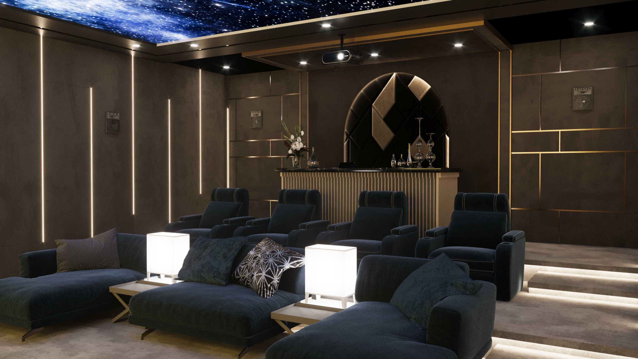 We are thrilled to announce the successful completion of the Home Cinemas project. This project embodies our commitment to delivering superior design and exceptional craftsmanship, resulting in a home cinema experience that is both luxurious and immersive.