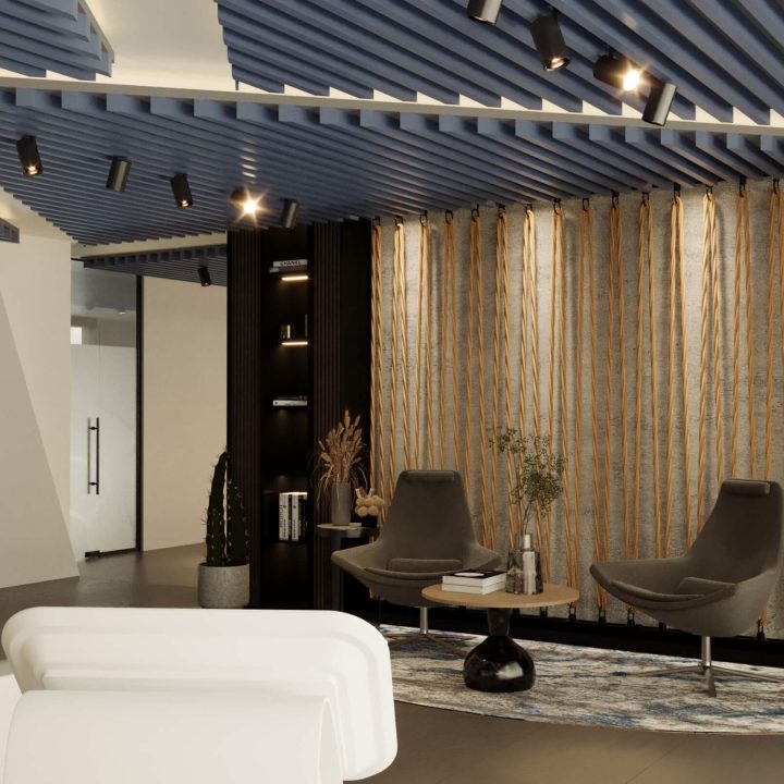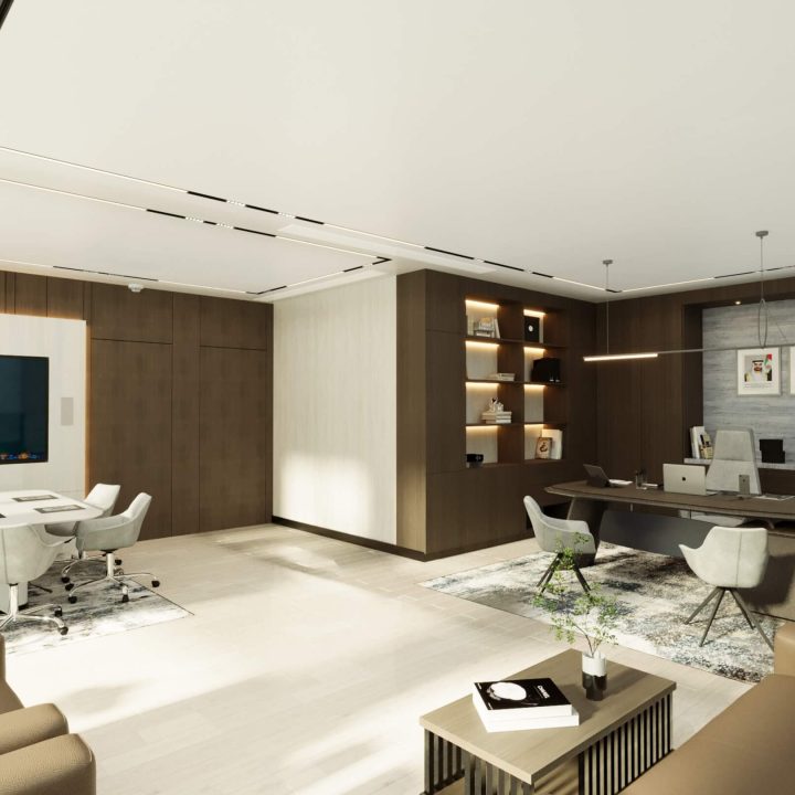Sustainable Practices: Sustainability is a key consideration in the design, with eco-friendly materials and energy-efficient systems integrated throughout the office. This approach minimizes the environmental impact and promotes a healthier work environment.