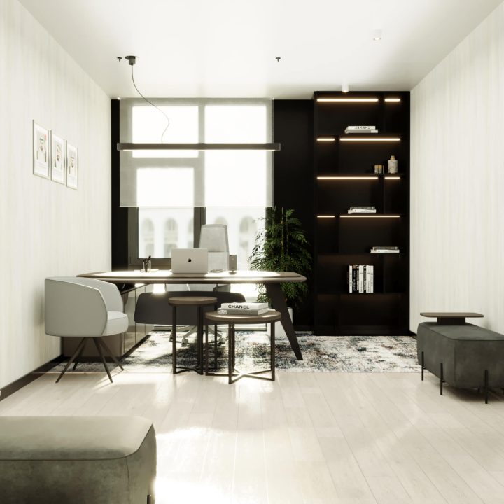 Optimized Layout: The office layout is optimized for functionality, with clearly defined areas for collaborative work, private meetings, and individual tasks. This thoughtful arrangement ensures that the office can support a variety of work styles and activities.