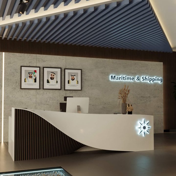 Elegant Interiors: The interior design of the Abu Dhabi Port Office is characterized by a sleek and professional aesthetic. Clean lines, neutral color palettes, and high-quality materials create a sophisticated and welcoming atmosphere.
