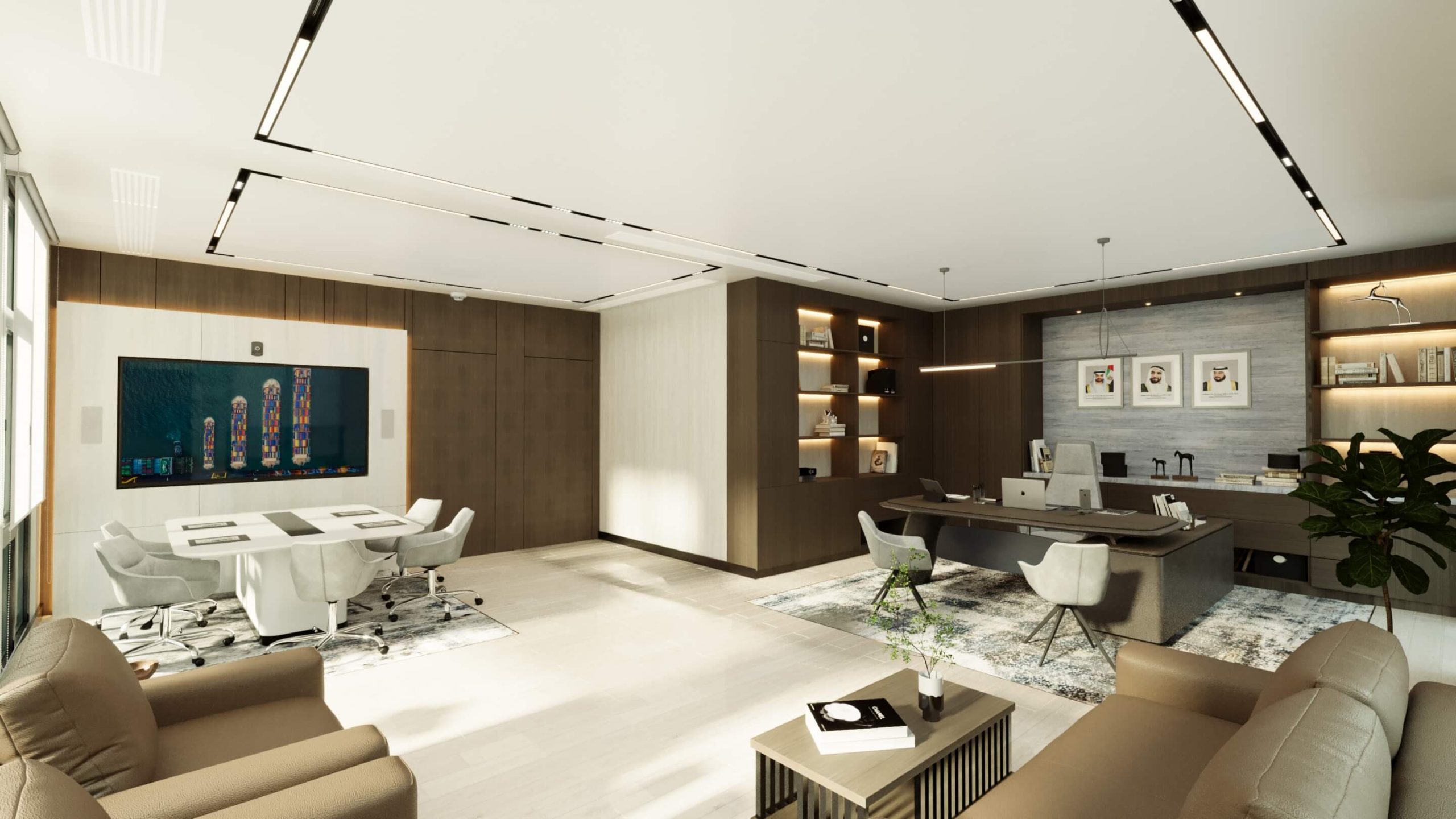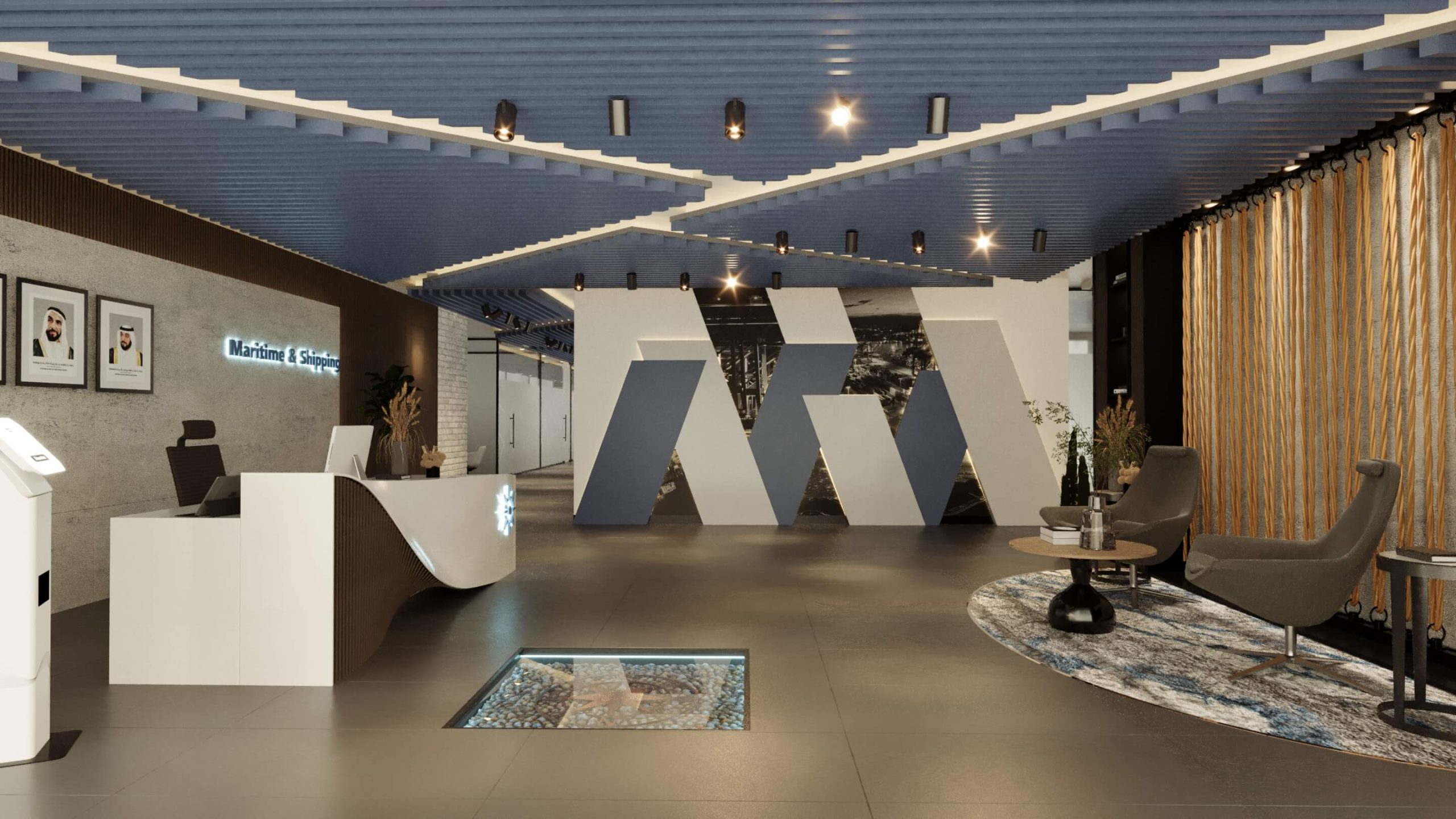Elegant Interiors: The interior design of the Abu Dhabi Port Office is characterized by a sleek and professional aesthetic. Clean lines, neutral color palettes, and high-quality materials create a sophisticated and welcoming atmosphere.