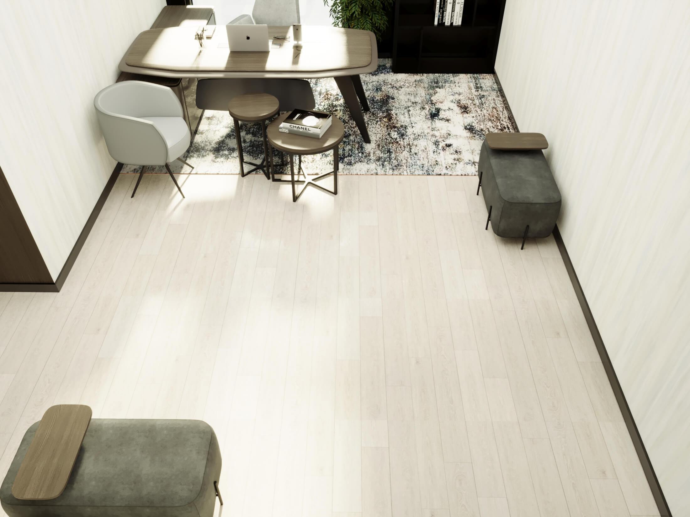 Optimized Layout: The office layout is optimized for functionality, with clearly defined areas for collaborative work, private meetings, and individual tasks. This thoughtful arrangement ensures that the office can support a variety of work styles and activities.