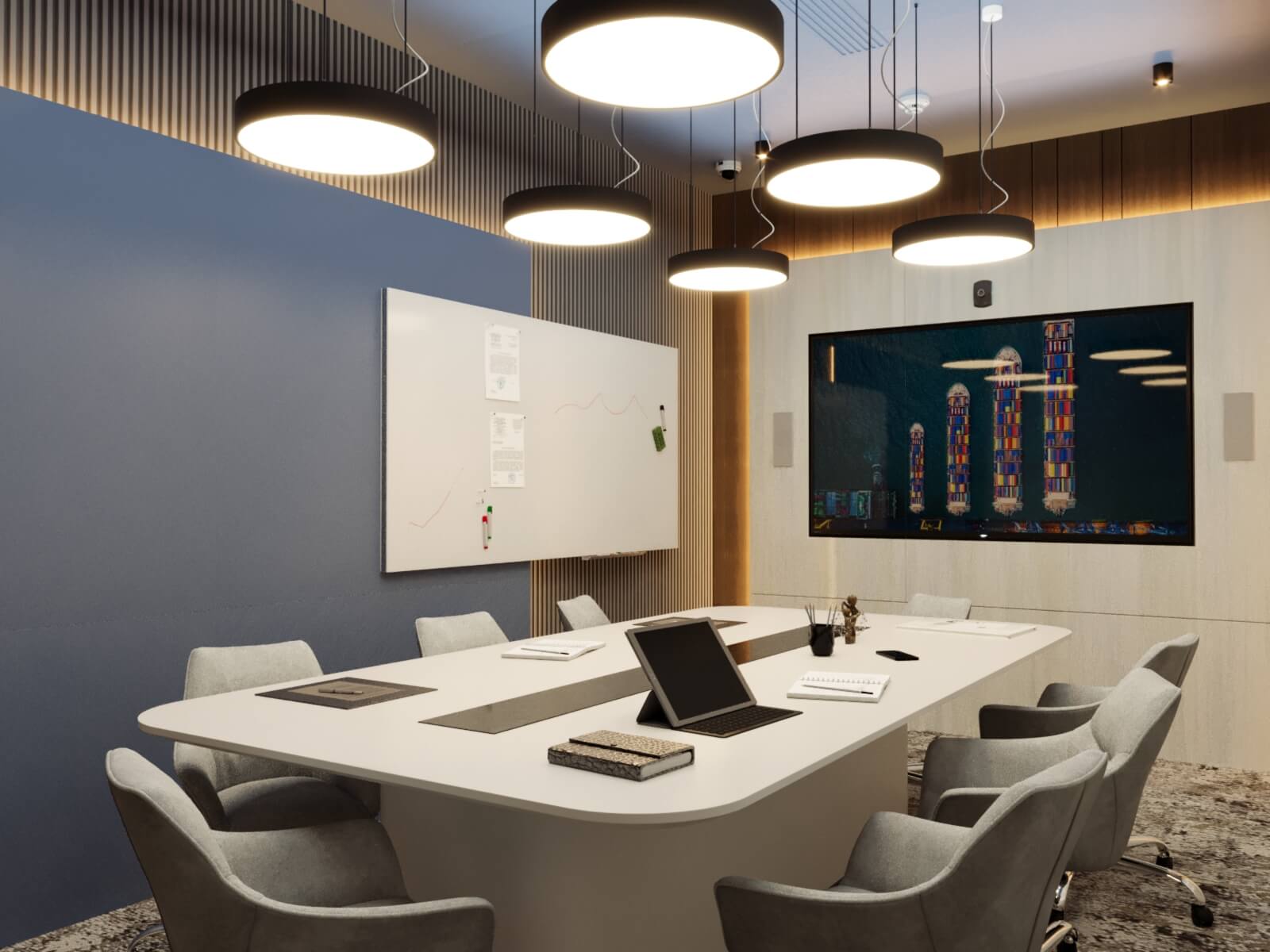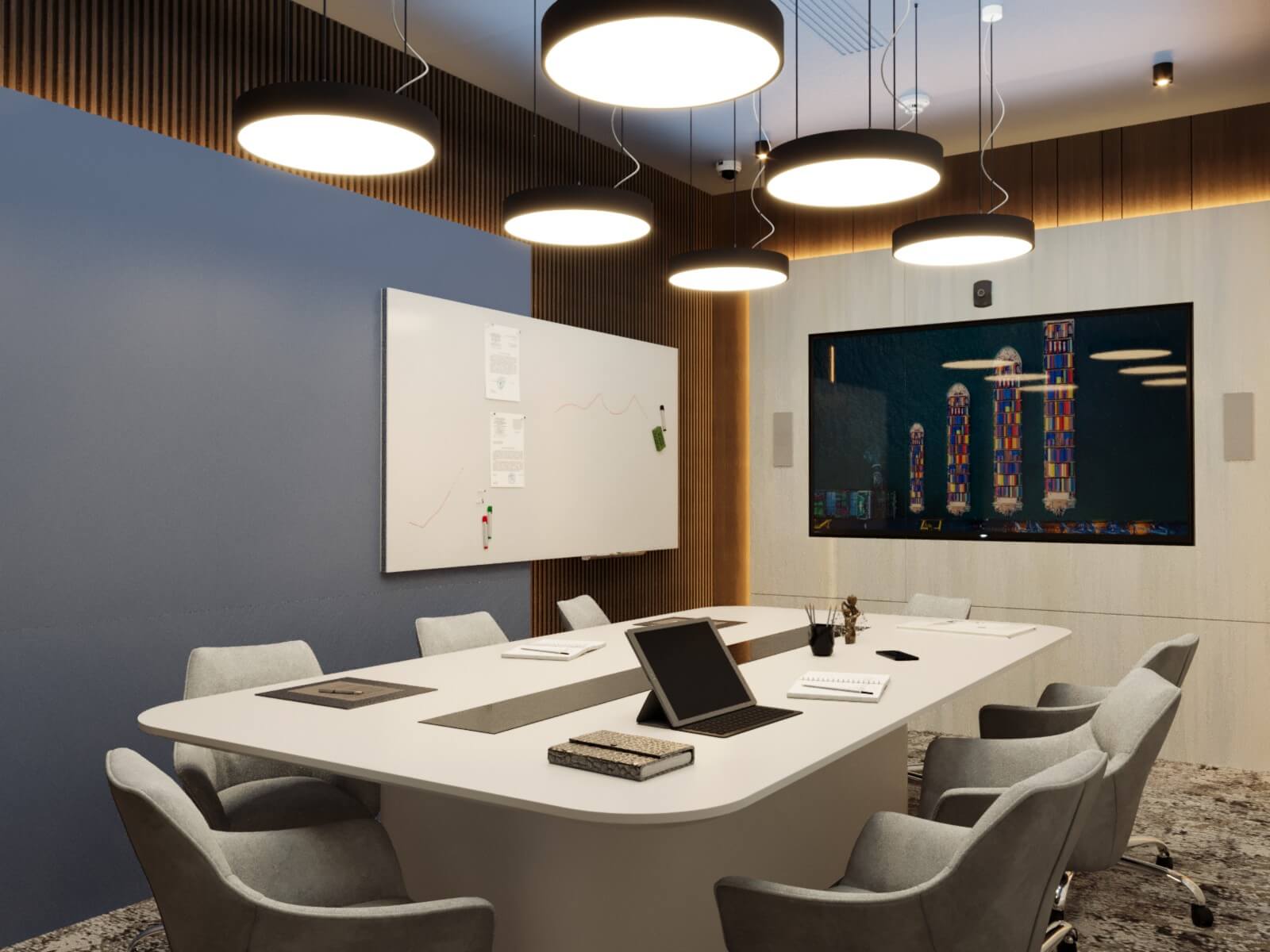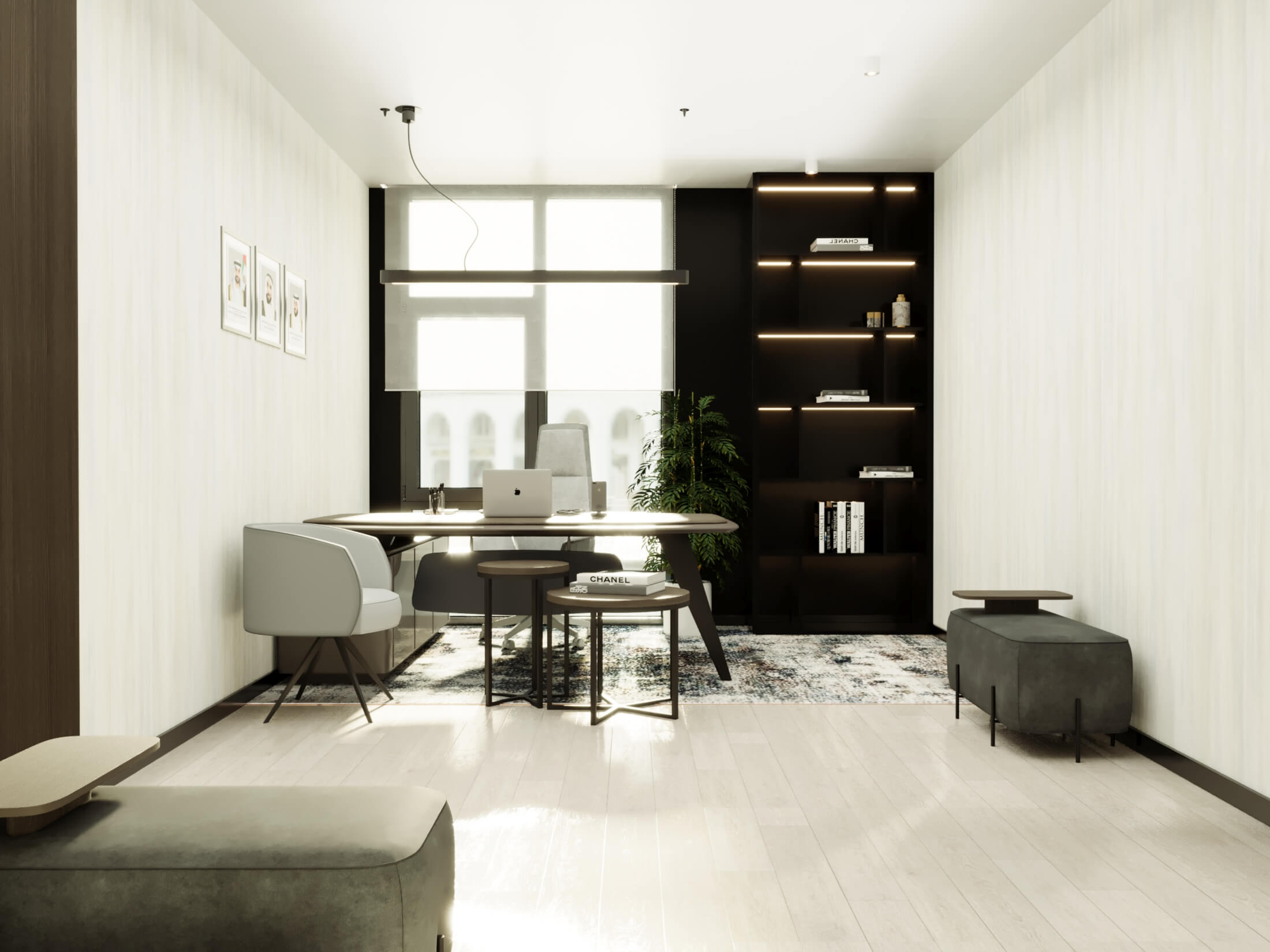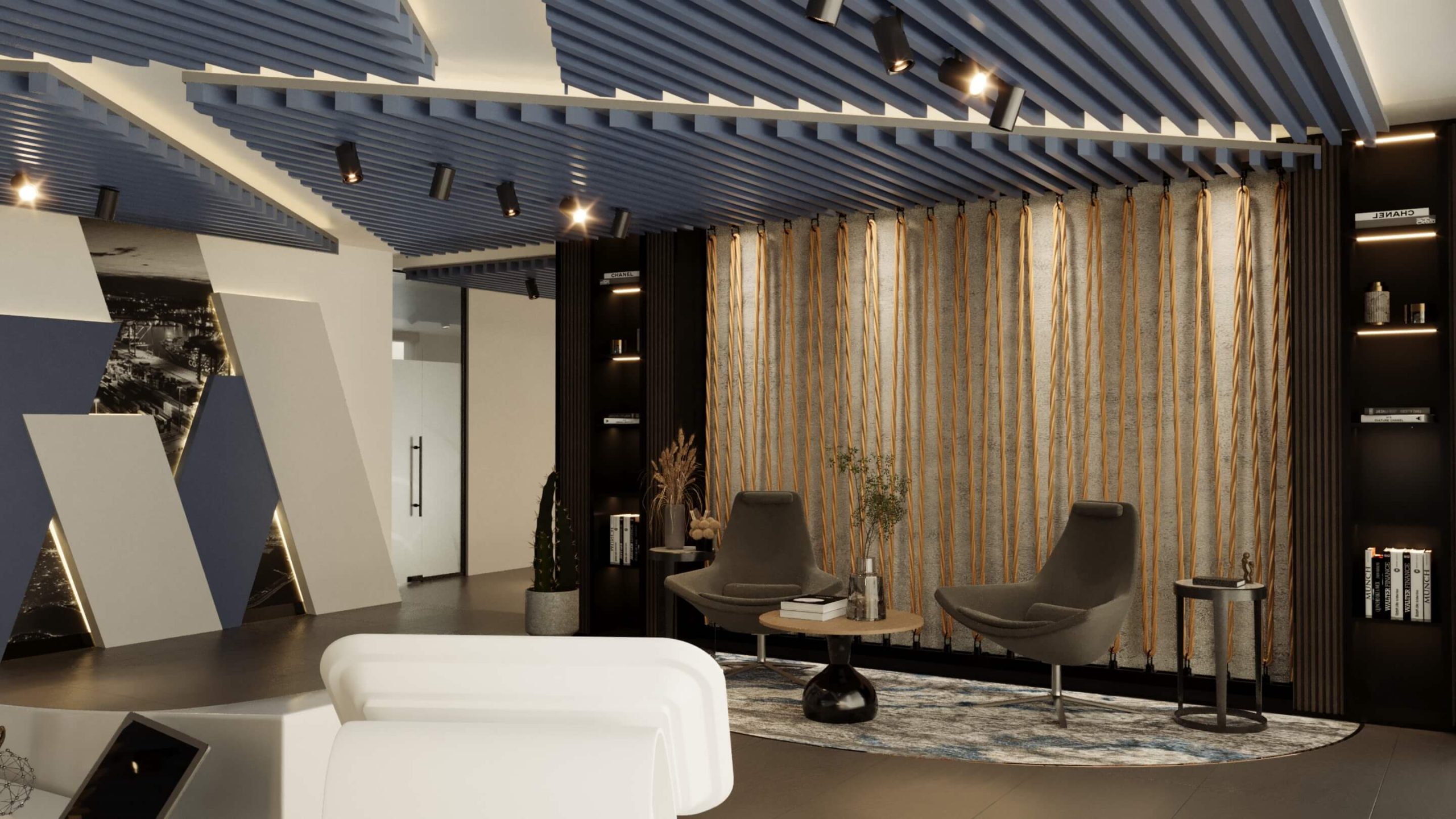 Sustainable Practices: Sustainability is a key consideration in the design, with eco-friendly materials and energy-efficient systems integrated throughout the office. This approach minimizes the environmental impact and promotes a healthier work environment.